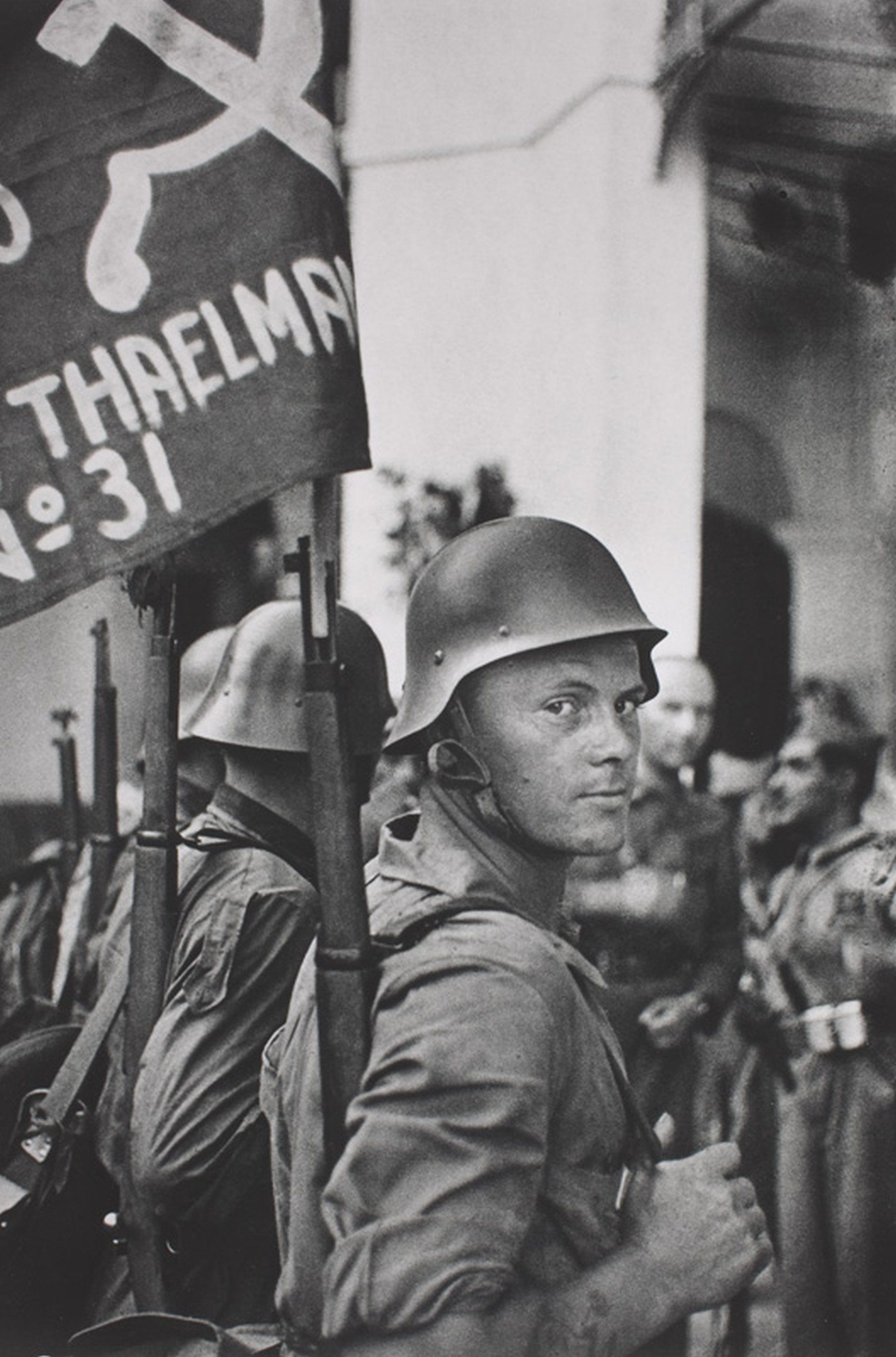 Internationally, Hitler and Mussolini were becoming more and more powerful and western democracies were having to appease the two – in fact they were more worried about Stalin and the communists than the fascists. When the Spanish Civil War started in 1936, after General Franco led a rebellion of the army, the US Communist Party recruited hundreds of Americans to go to Spain to support the republican Popular Front government. Oliver arrived in January 1937, and because he had military experience and was a communist, he quickly gained promotion. The volunteer International Brigades were essentially controlled by communists who in turn were shaped by the Soviets.